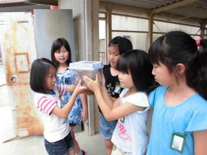 無事サナギからかえった日,みんなで外に放しに行きました。今まで育てさせてくれてありがとう!の気持ちを込めて,大空に放ちました。自然に帰っても,元気でね!