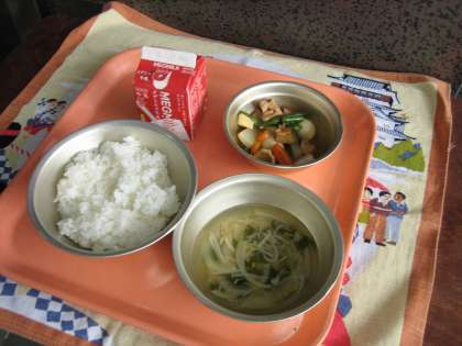 ごはん・牛乳・プリプリ中華いため・わかめスープ