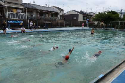 今日は水泳教室の2日目です。昨日惜しくも25メートルに届かなかった子どもたちも「今日こそは!」と意気込んで来てくれました。昨日よりも人数が減り,先生とほぼマンツーマンでしっかりと泳ぎを教えてもらいます。