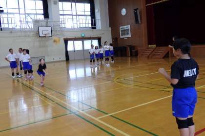 バレーボール部の夏休み練習は昨日から始まっています。今日もみんな張り切って練習をしていました。
