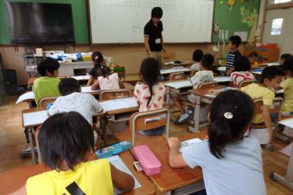 1年生のようすです。夏休みの思い出を思い出しながら,できごとを書いているようです。