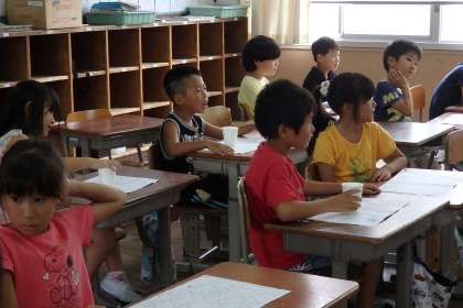 2年生は先生のおはなしの後,みんなに1つずつ紙コップが配られました。これは何に使うんでしょうか……?