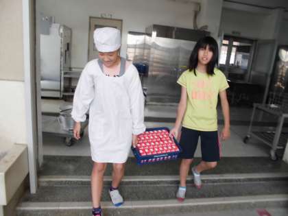 今日から牛乳パックの形が変わりました。市販の牛乳パックのミニチュアのような,てっぺんが三角になっている形から,真っ四角の形になっています。この牛乳パックは飲んだ後にすすいだり,折りたたんで1つのパックに詰めていく必要がありません。