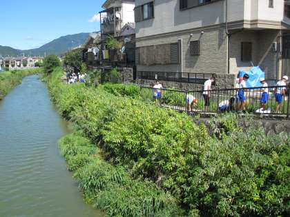 次は有栖の小道の清掃のようすです。こちらは4〜6年生と4組さんが中心になって,清掃を行いました。こちらの清掃活動は草抜きはもちろん,溝や道に落ちているゴミ拾いまで積極的におこないます。