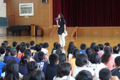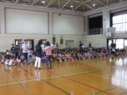 全員が体育館に集合した後は,教頭先生のお話を聞きます。「自分の身は自分で守る」ことをしっかり考えて行動するように,とお話されました。子どもたちも真剣な表情で話を聞いていました。