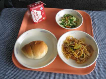 バターロールパン・牛乳・イタリアンスパゲティ・アスパラガスのソテー