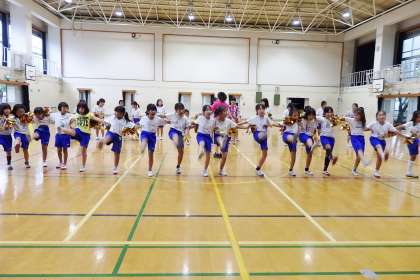金曜日は全体の流れのほか,スタンツとラインダンスのグループに分かれての練習も行いました。スタンツはタイミングを合わせて上に立つ練習です。まだ完璧ではありませんが,昨日一日でぐっと上達しています!ラインダンスもタイミングや姿勢が揃ってきて,チアダンスらしく,カッコよくなってきました。