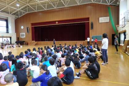 今日はなかよし集会の日でした。たてわり班に並んで,様々なお知らせや発表を聞きます。ちなみに,今日は5年生の実行委員が司会・進行を担当してくれました。これからの季節は5年生が6年生に代わって活躍する機会が多くなってきます。また一つ成長が感じられる瞬間です。