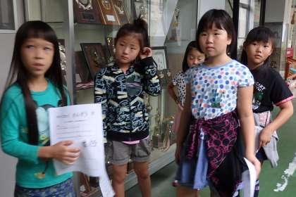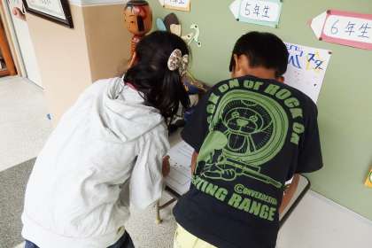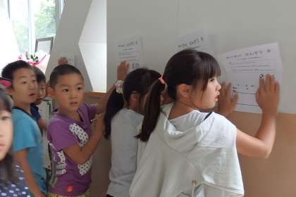 算数クイズの問題が出された後,たくさんの子たちが早速問題を解きに来てくれました。前回は参加人数が少なめだった1年生もたくさん来てくれて,あっという間に最初に用意していた分の解答用紙がなくなりました!
