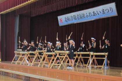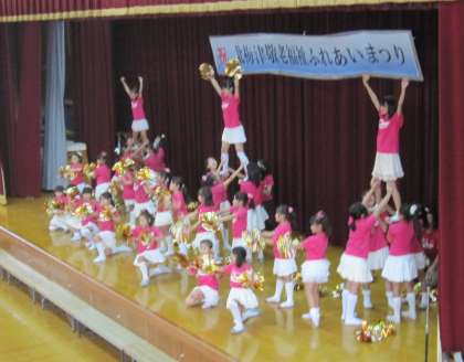 敬老福祉祭りに、チアリーディング部・竹太鼓部が出演しました。会場一杯のお客様から、大きな拍手をいただきました。