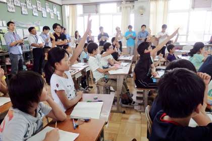 そんないつもと違う雰囲気の教室の中でしたが,写真の通り,みんなとても積極的に手を挙げて発表しようとしています。