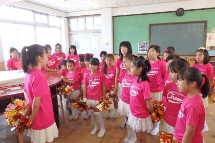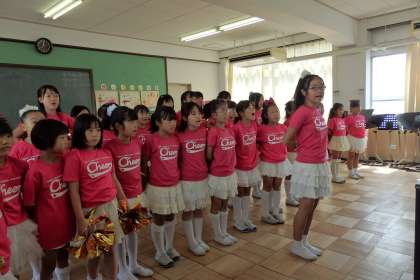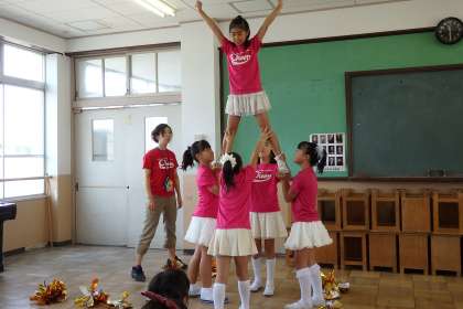 スタンツやポン文字にラインダンス,みんなで力を合わせるところは,もう一度グループに分かれて最終調整をします。本番前の最後の時には,スマイラーズのキャプテンから,みんなへの励ましの言葉がおくられ,真剣な眼差しで本番に挑みました。