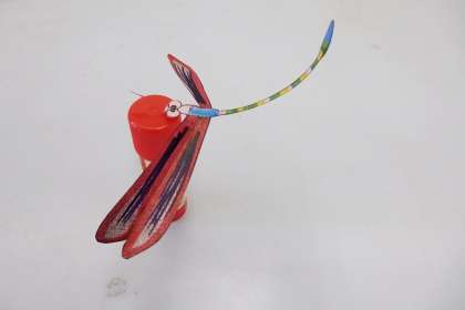 今日の科学クラブでは,みんなでバランストンボ作りをしました。バランストンボは,やじろべぇの一種です。ペラペラ・まっすぐの紙の状態では,上手くつり合いがとれず,すぐ落ちてしまうのですが,重心を考えて折り目をつけたり曲げたりすると,うまく棒にとまります。