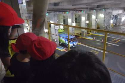 紹介映像の後は,早速施設の中を回りました。施設では職員の方が様々な解説をしてくださいます。ゴミ収集車からゴミを捨てるところや,ゴミを燃やしている炎など,リアルタイムの様子が見られます。出入りする車やクレーンには子どもたちも,強い関心をしめしていました。
