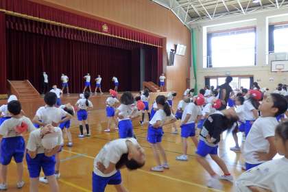 全校ダンス練習のようす