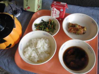 ごはん・牛乳・ちくわのいそべあげ・小松菜のごまいため・赤だし