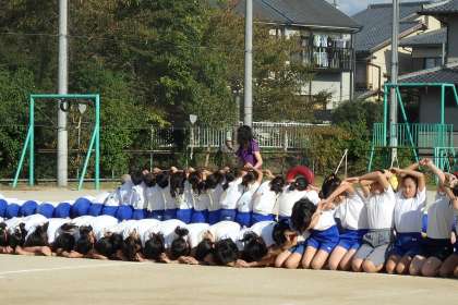 5・6年生は運動場での組体操の練習を始めています。今年も去年のような,ピシッとそろった背筋の伸びるような演技を目指して猛特訓中です。本番まであと1週間をきって,組体操への真剣さも増します。