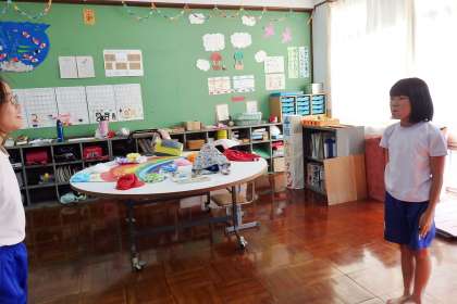 4組のみんなも組体操に参加します。今日は交流の子も4組に来てくれて,一緒に組体操の練習をします。タイミングや1人技などを,ビデオを見ながら練習していきました。右・左もどんどん覚えて正しいようにできるようになってきました。本番も頑張りましょう!
