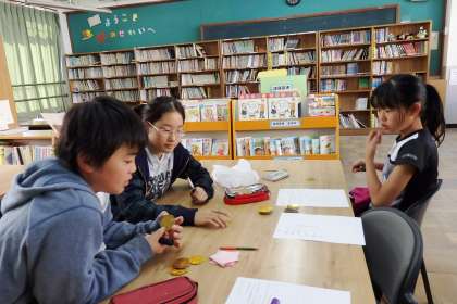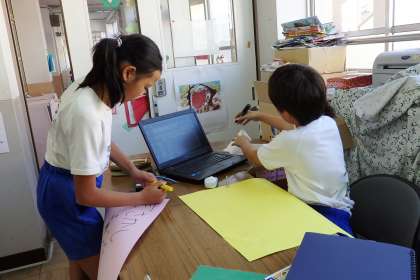 図書委員さんは毎日,少しずつ来週の準備を進めてくれています。今日も給食を早めに食べて,図書館で準備を進めました。準備の内容はお楽しみ……のため,今回は写真も小さめでご紹介します。1つ1つ丁寧に心を込めて,書いたり作ったりしています。