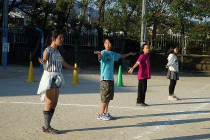 全員の前でダンスを踊るダンス係のみなさん。他の子たちにダンスを教えたりと,今日までも忙しく大活躍でした。明日の開会式もみんなの先頭に立って盛り上げてください!