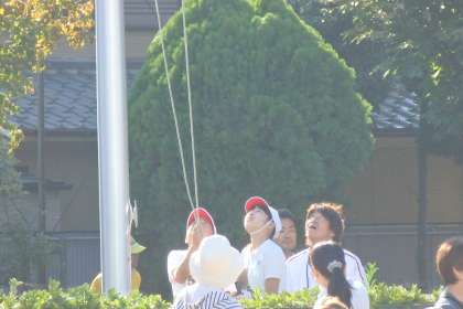 校歌を歌い,旗も青空高く上がりました。