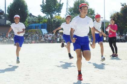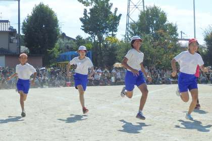 あっという間に応援席を駆け抜ける6年生は,他の学年の子たちの憧れです。応援にもより熱が入りました。