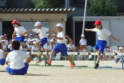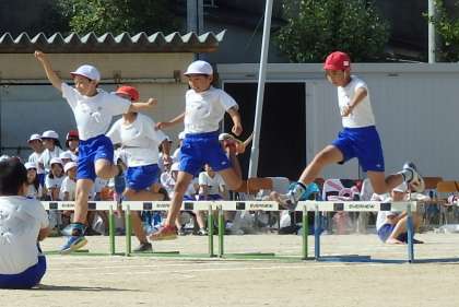 ハードルを軽やかに跳びこえて,まるで普通に走っているようにスムーズに進んでいく子もたくさんいました。練習の成果ですね!