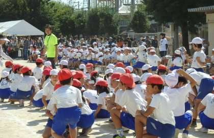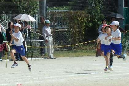 ダンスの後は,3年生の80メートル走です。3年生からは,30メートル伸びて,80メートルになります。曲がったコーナーを上手く走り抜けられるかが,勝負の分かれ目。みんな頑張って走りました!