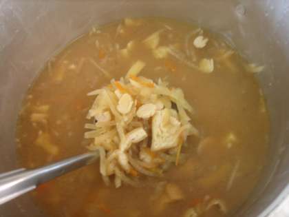 「打ち豆汁」は新物資の「打ち豆」を使った献立です。「打ち豆汁」は福井県の郷土料理で今月の新献立です。雪国越前に古くから伝わる伝統的な大豆加工品です。大豆を水に浸して柔らかくしたものをたたいて平たくつぶし、再び乾燥させて、打ち豆にして貯蔵しています。豆をつぶすことにより、ひび割れが多く入り、火の通りよく早く柔らかくなります。今日は油あげ・人参・大根と一緒にみそ汁になりました。