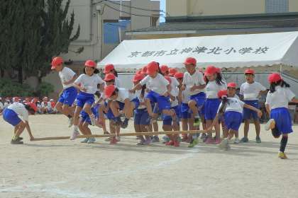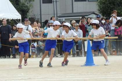走る出番以外も気が抜けないのが,この競技。走って帰ってきた人の持つ竹の棒を,上手くジャンプ!これが勝負の分かれ目にもなります。大接戦を制したのは,赤組でした。