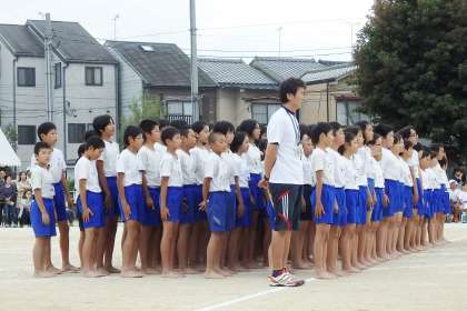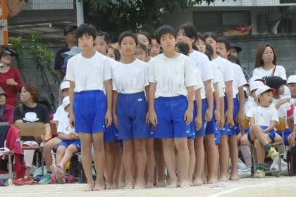 さて全ての競技が終わり,運動会も残すところ組体操だけとなりました。最後の出番を締めくくる5・6年生。6年生は6年間の集大成,小学校最後の運動会です。始めの挨拶や掛け声にも力がこもります。