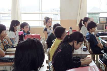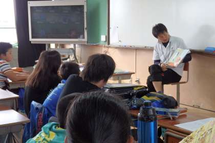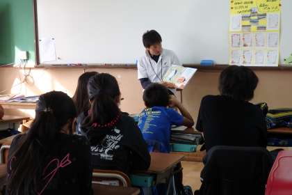 このクラスは可愛いおばけの絵本でした。先生が抑揚をつけながら,面白おかしく読み聞かせをしてくださいました。