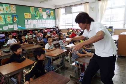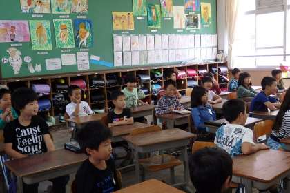 こちらのクラスはおなかのすいたライオンのお話だったようです。「食べちゃうぞー!」と椅子から立ってみんなに向かってくる先生に子どもたちも大喜びです!