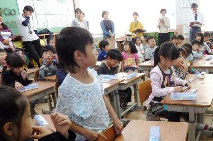 たくさんの先生の前でも,みんな張り切って手をあげます。しっかりはっきりと,大きな声で発表をしてくれました。