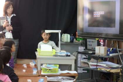 みんなの前で数図ブロックを動かすことにも,多くの子が挑戦してくれました。今日の問題は8+3。初めての学習する繰り上がりの足し算です。手を動かしながら,同時にしっかりと説明もできます!