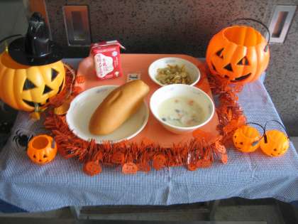 コッペパン・牛乳・ツナごぼうサンド(具)・きのこのクリームシチュー・マヨネーズ