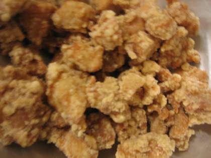 「鶏肉のこはくあげ」は鶏肉にしょうが醤油に漬け込み、小麦粉・片栗粉をまぶして油でカラッと揚げました。