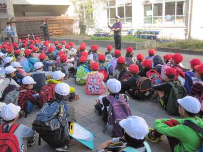 1年生も2年生も笑顔で学校を出発しました。