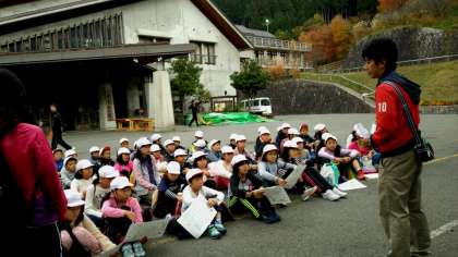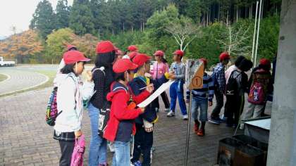 今からクイズラリーが始まります。グループで山の家の敷地内にあるクイズを解いてまわります!時間内にどれだけまわれるでしょうか?