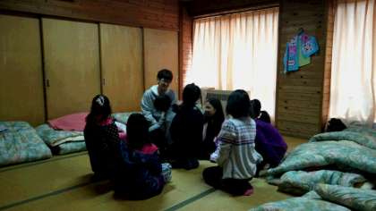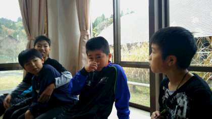 部屋でのんびり過ごしたり,友だちとわいわい盛り上がったり……学習発表会の練習をしていた子たちもいます。
