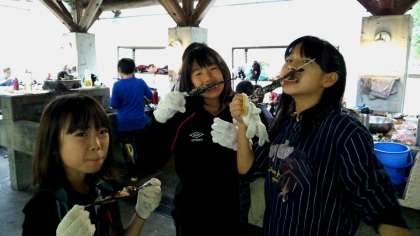 つかんだ魚もいい具合に焼きあがりました!自然の恵みに感謝して……美味しくいただきます!