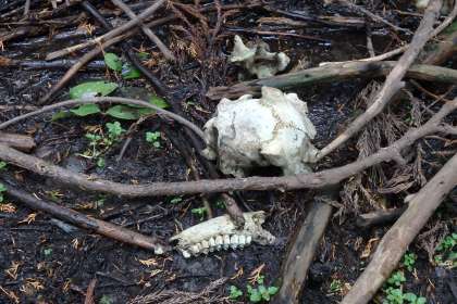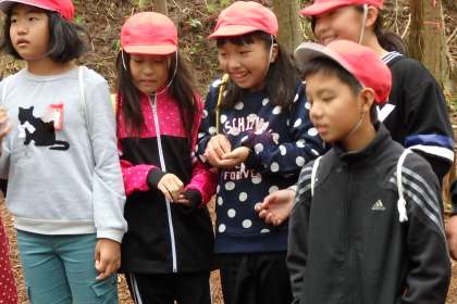 ちょっとドキリとしたのはシカの骨です。骨,というだけでも少し緊張したようすでしたが,さらに職員さんからは「ここは何故かよくシカが死んでいる場所なんだよ。」と聞かされ,さらに緊張した顔の子どもたち。他にもツバメやタヌキ,いろいろな動物の生態を教えてくださいました。