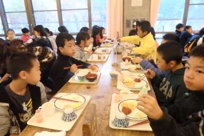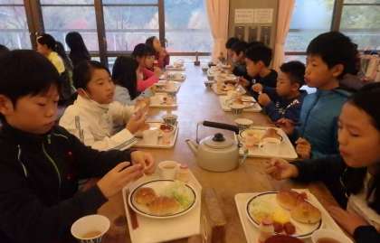 今日はヤクルトも一人1本付きます。今日のお昼はお弁当になるので,朝ごはんをしっかり食べました。