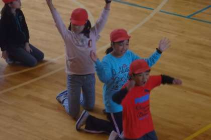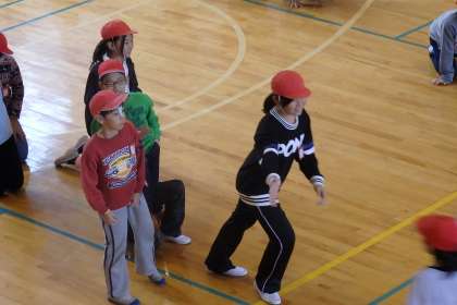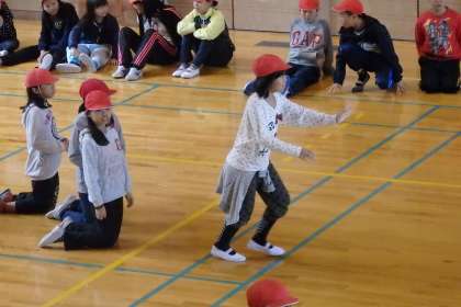 1回戦は先生が,2回戦は子どもたちがじゃんけんの係になってリレーをしました。アンカーは白色です。少しずつ近づいてくるアンカーに子どもたちも白熱しました。