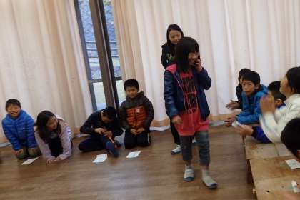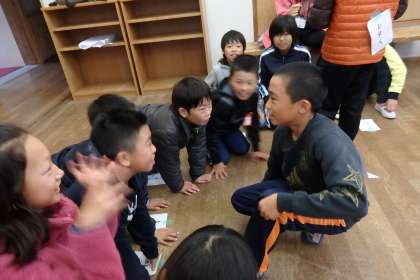 書かれた文字は,キリンやカラスなど動物の名前もあれば,ルーレットやガムテープという難問や,先生の名前まで!最後まで残ったのは,「もやしちゃん」と「すずめばちちゃん」でした。どちらも難しい問題でした。