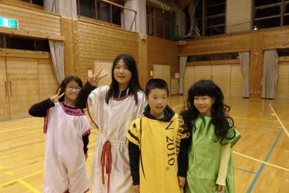 夕食後はいよいよキャンプファイヤーです。雨のため,プレイホールでのキャンドルファイヤーに変更になりましたが,こちらも神秘的です。始めに火をともす役割の火の子になった子どもたちは,みんなより少し早目にプレイホールに集まりました。衣装も着けて,本番通りの動きでリハーサルです。