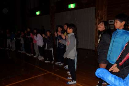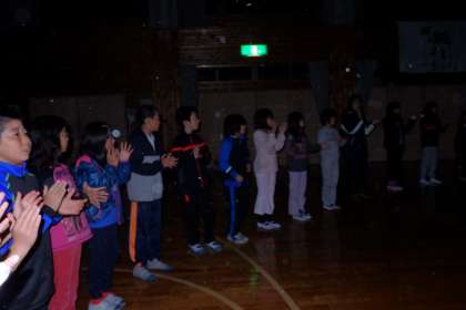 『手と手と手と』では,隣の人と手や肩を合わせながら歌う曲です。リズムに合わせて,それぞれの場所をタッチ!ノリノリで歌いました。