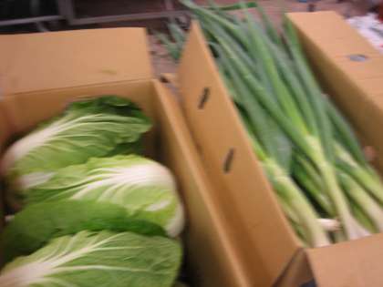 「はくさいのごま煮」の「白菜」は煮物、炒めもの、スープ、鍋物などいろいろな料理に使われます。風邪を防ぐビタミンCが多く含まれています。たくさんの白菜が使われました。