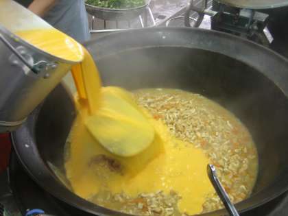 「あがたま煮」は油揚げを味つけして炊き、玉ねぎ・人参も別のお釜で炊きます。それを一緒にして卵でとじます。お揚げに味が浸み込みとろとろの卵と一緒になりごはんがとても進みました。青ネギも入り彩りもよかったです。