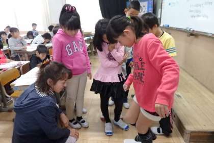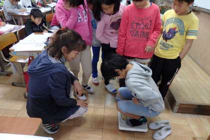 今日は,体重計に乗り色々なポーズをとってみて,体重が変化するかという実験をしました。片足で立ってみたり,しゃがんでみたりして,自分の体重を確かめます。どんなポーズをとっても,自分の体重は軽くなったり重くなったりしません。これは,もう少しで学習する理科の単元でも似たような実験をします!算数での実験や学習が,他の教科でも活きてくれると嬉しいと思います。